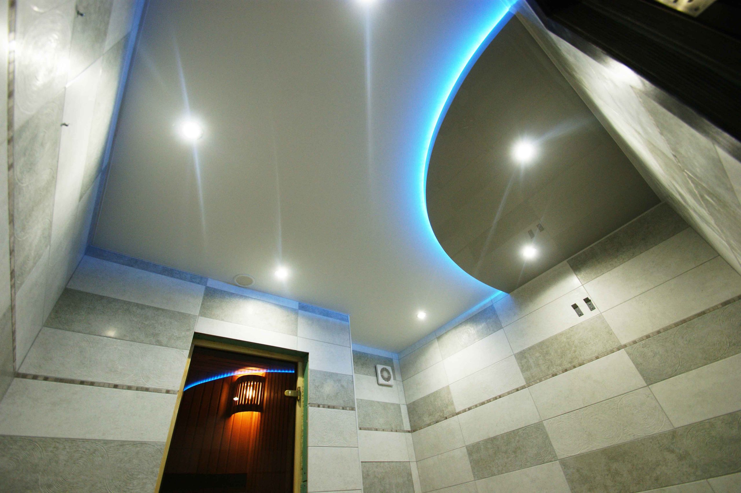 С натяжными потолками, так же как и с подвесными вариантами, легко реализовать встроенное освещение и обеспечить звукоизоляцию. Для этого между натяжным полотном и истинным потолком устанавливается специальная рама, обычно из фанеры, на которой закрепляются светильники и звукоизоляция. Эта рама также крепится к стенам.