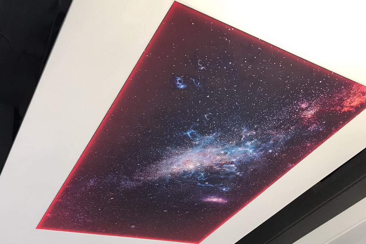- Фотодрук: Якщо ви вже визначилися з дизайном фотодруку для стелі. Уточніть, які ділянки матимуть фотодрук, щоб заздалегідь врахувати особливості замірів.